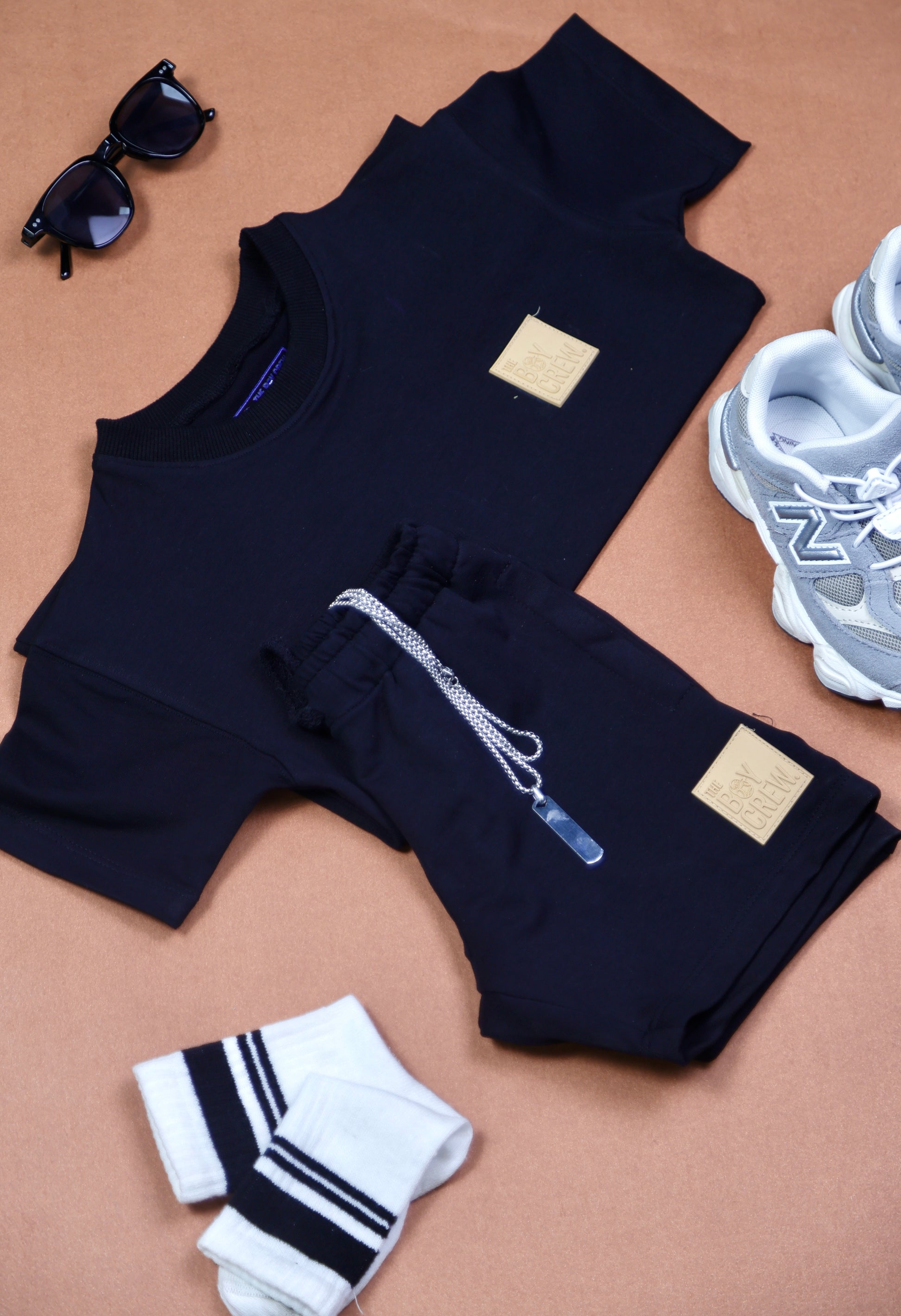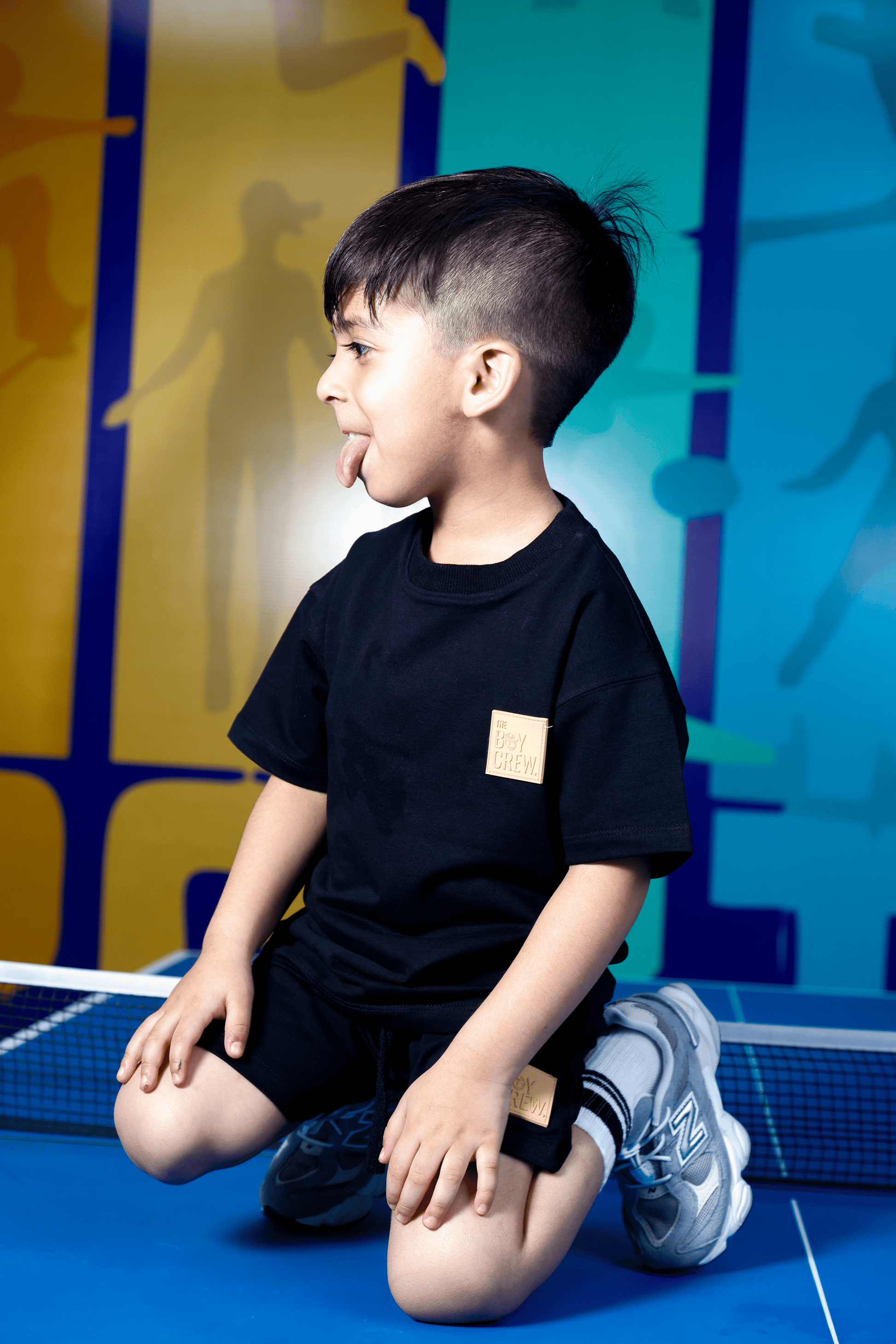 Shadow Mode Co-ord Set – Trendy Black Cotton T-Shirt & Shorts for Kids