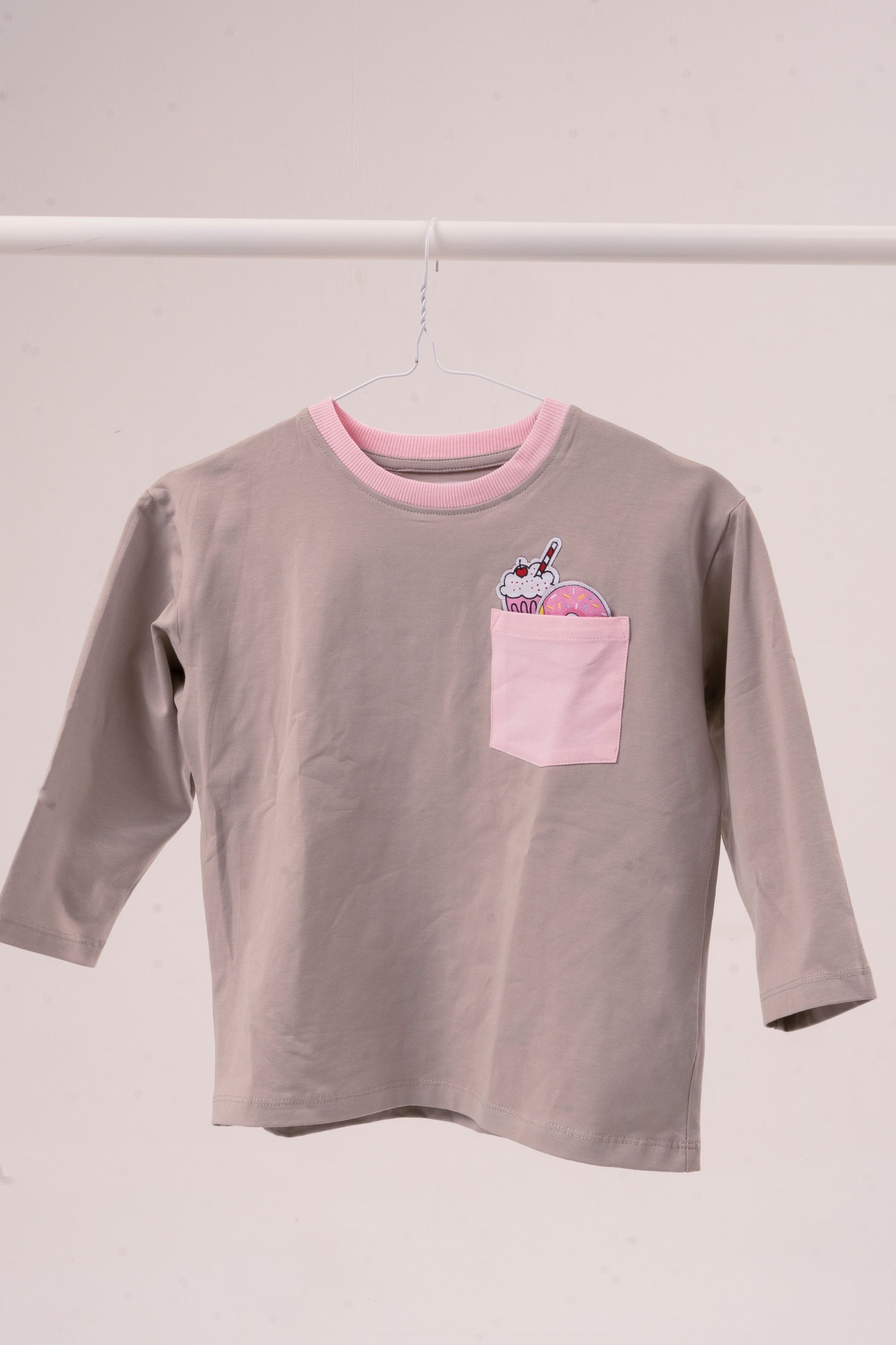 This playful long-sleeve tee in a unique cement colour features a pastel pink contrast pocket and neckline. Embellished with adorable dessert patches — milkshake, donut, and cupcake — it captures the carefree, sweet-loving spirit of every little boy. Crafted from breathable cotton for all-day comfort and style. Made from a stretch cotton lycra blend that moves with your little one keeping him comfy and cool all day long.